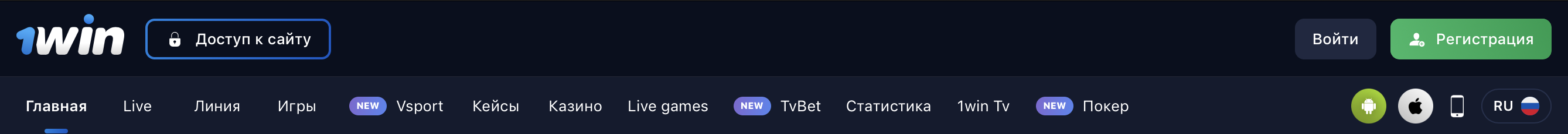 Главная страница официального сайта 1ВИН наполнена полезной информацией. В оформлении основного ресурса использовали белый и синий цвета. На главной странице есть вкладки на основные разделы ресурса: казино, лайв, линия, лайв-казино, киберспорт, Авиатор, покер, виртуальный спорт и другие.